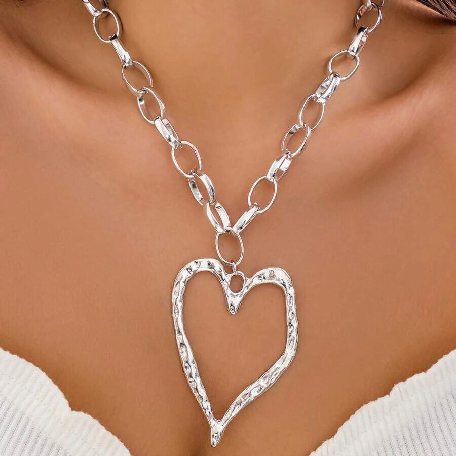 Obega Big Hollowout Heart Pendant Necklaces Women Gold SIlver Color Thick Chains Metal Love Heart Design Women Necklace Jewelry AXL40014S – Sumsfashion